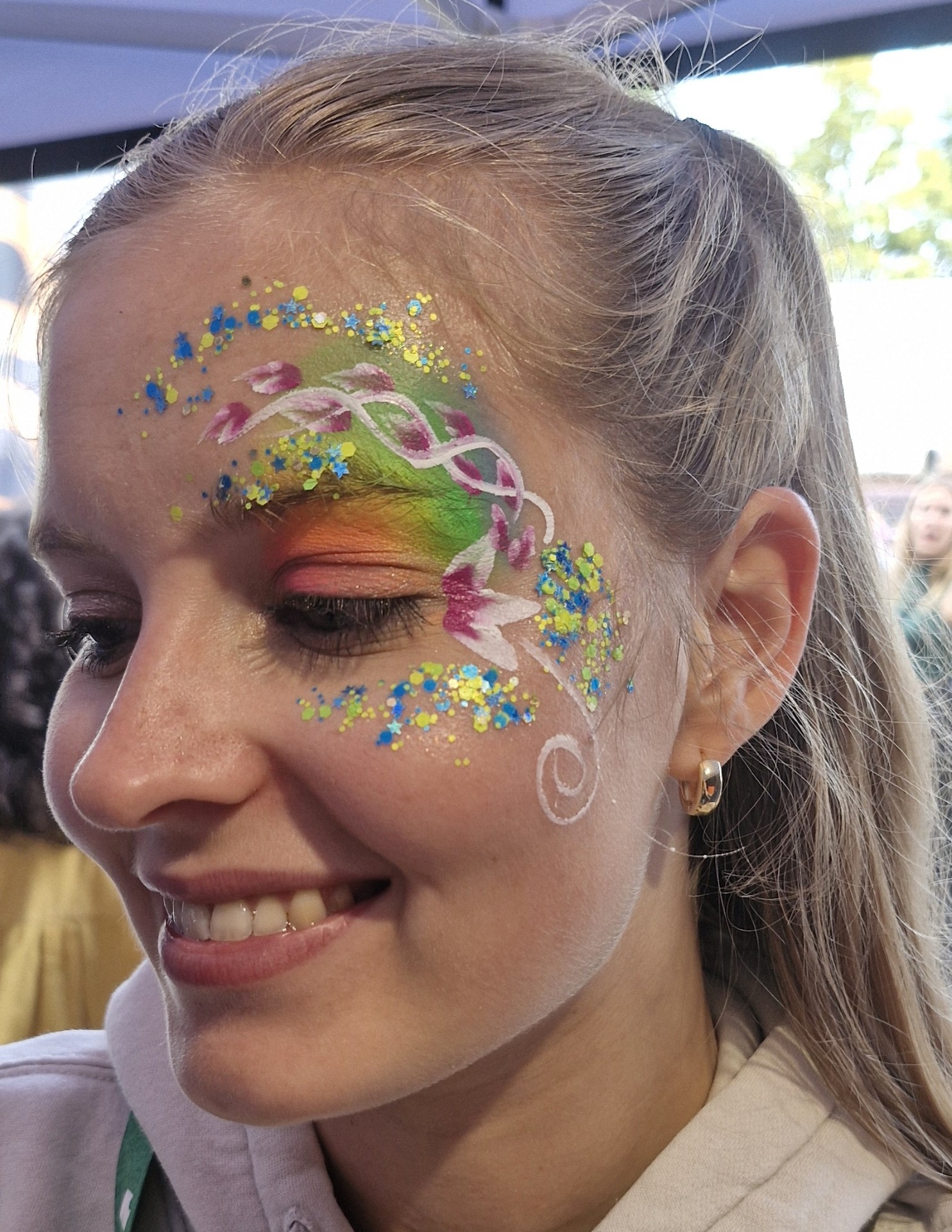 Ik heb Kelly's Fun and Happy Faces gestart door mijn voorliefde voor kindergrime, kleuren en glitters.